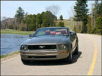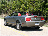 Panhard rod, mind you, but still not an independent setup, the car is wonderfully stable at high speed, only getting ruffled when a particularly large bump on the road would raise its ugly head. Part of the reason for its agility is the independent front suspension setup and power actuated rack-and-pinion steering system, but more so the new Mustang's tight body structure is its greatest boon, unusual in relatively long-wheelbase convertibles. You can spend $100,000 more for a fully optioned version of Ford's premium brand convertible, the Jaguar XKR for instance, and not get as tight a structure, and therefore not get a car that delivers such a confidence inspiring handling package. The supercharged Jaguar will be quicker, however, at least when comparing it to the base Mustang convertible. Still, at 210-horsepower and 240 lb-ft of torque my tester's 4.0-litre SOHC V6 offered plenty of fun in the sun driving enjoyment. Actually, the burble emanating from the twin exhaust pipes sounded very V8-like - my compliments to the fine tuners.