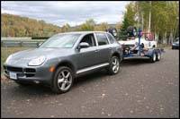 When the time came to attach a trailer to the back of the Cayenne S, I thought I had to lock the differentials to be able to climb over the curb but no, the engine's torque and the four-wheel drive system smoothly handled the job. In Tremblant, I locked one of the differentials to tow my loaded trailer on the slippery hills, just for safety precautions. On the road, the Cayenne S acted as if there wasn't even a trailer attached to it. The vehicle remained stable and never showed any signs of fatigue after climbing long, steep hills. Actually, it was like the hills did not exist. In my mind, the Cayenne S is a cross between a sprinter and a long-distance runner.
