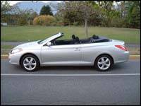 Once two latches are manually released, Toyota's ragtop electrically drops its tight-fitting fabric roof in a matter of seconds. As with most lidless cars these days, the Solara's rear window is comprised of glass and electrically heated to ward-off frost and fog. Old school in the concealment of the Solara's retracted roof is the need to manually attach its ill-fitting soft tonneau cover. To complete the Solara's gorgeous drop-top look, the