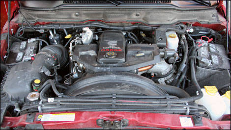Mated to an excellent 6-speed automatic transmission, the new 6.7L Cummins turbodiesel is a little grumpy at takeoff but, once up to speed, say at 115 kph, it purrs like a cat, revving at no higher than 1,800 rpm. Gear shifts are smooth, while the tow mode makes hill starts easier, especially when hauling a full load. The shift control function on the shift lever becomes an ally to adjust engine revs and gear ratios based on your driving style.