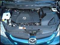 punch of this mill that impressed me but rather the refinement of its operation that drew a smile to my face. One would be hard-pressed to find a smoother running four-banger in any vehicle in the Mazda5's price range or higher. Within normal driving parameters, engine harmonics are near zero. Only when pushed hard does the little mill make its presence known- but not in the frenetic way many 4-cylinder units do. The output calmly produced is capable of moving the Mazda5 with respectable vigor, although I suspect that 6-occupants and a mountain pass would gang-up to pretty much neuter the spirited mill. Nonetheless, its miserly fuel consumption is more than enough to make-up for any lack of highway gusto, especially when the 5-speed manual transmission is in place. In such a case, expect to use 10.6 and 8.0 litres of regular unleaded per 100 kilometres of city and highway driving respectively (22 / 29 mpg).