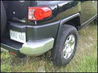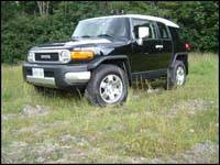 position. Once underway, I was most impressed with the solidity of the FJ's chassis and the ride quality it produces. There is absolutely no suspension noise or body-shudder to speak of- and that's unusual for a heavy duty 4X4. Toyota's engineers have done a tremendous job of under-pinning the FJ with a very rigid, ladder-style frame onto which they bolted a sophisticated, long-travel suspension setup. The complex arrangement produces a remarkably smooth ride over the worst pavement imaginable. To further refine ride quality and eliminate noise, my tester was shod in quiet-rolling, 17-inch all season rubber. Perhaps it was the absence of tire drone that magnified the groan of the FJ's only available engine, a 4.0 litre, DOHC V6. Noisier than I think it should be, the rugged mill is fortified with Toyota's Variable Valve Timing with intelligence, which contributes to the production of 239 horsepower at 5,200 rpm and a "healthy" 278 pound-feet of torque at 3,800 rpm. Although these figures are good, they're not staggering. As a result, acceleration and passing power just meets my rating of 'above par' for this class of vehicle.