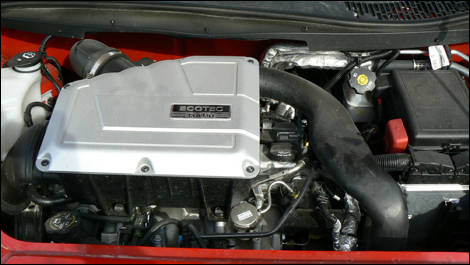 HHR SS's powerplant is a legend in online compact-tuner discussion boards. It's a two-litre mill, the supercharger now dropped in favor of an intercooled turbo that helps net 260 horsepower.