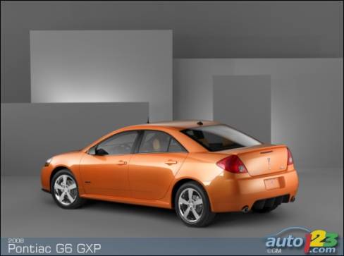 The 2008 G6 GXP, replacing the 2007 G6 GTP, will also feature GM's engine-of-the-moment 3.6-liter DOHC 24-valve V6. It will still produce 252 horsepower and 251 lb-ft of torque in GXP duty, and will be coupled to a 6-speed automatic. Base and Street Edition models will be offered, the latter including 18-inch chrome wheels, polished front grilles, hood scoops, a dual exhaust and a huge rear spoiler.