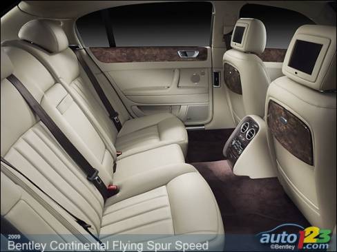 The Continental Flying Spur Speed further stands out thanks to larger exhaust tips, dark chrome grille and air intakes, a leather-wrapped, 3-spoke sport steering wheel, 'Speed' logos on the door sills, drilled alloy pedals, a chrome shifter and diamond-quilted leather on the seats and door panels.