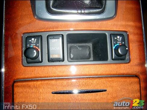 I found the FX50 a tremendously satisfying rig to drive. It coddles its occupants in soft, quilted leather and surrounds them with wood and upscale trim. I particularly enjoyed the heated and cooled driver's throne. This infinitely adjustable perch held me motionless through turns, and supported me better than a certified grief counselor.