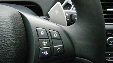 Seriously though, if using the manual shift paddles, the need to click into second gear arrives with astonishing brevity. If you’re not dialed-in to the tach, which is transferred to a heads-up display on the windscreen when ‘M’ mode is activated, the engine instantly hits its rev-limiter.
