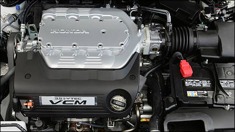 The performance-oriented Accord V-6 Coupe with 6-speed manual transmission exclusively has a 3.5-liter V-6 VTEC engine (without VCM, hence no "i" in VTEC) that offers an exclusive valvetrain, intake and exhaust system that broadens the torque curve in the low- to mid-rpm range.