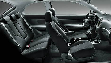 For 2010, pricing starts at $13,599 for the 3-door model with 5-speed manual, and $14,299 for the sedan. All models get a standard 1.6 litre engine with 110 horsepower, backed by 106 pounds feet of torque. Though a five-speed manual transmission is standard, a four-speed automatic can be specified.