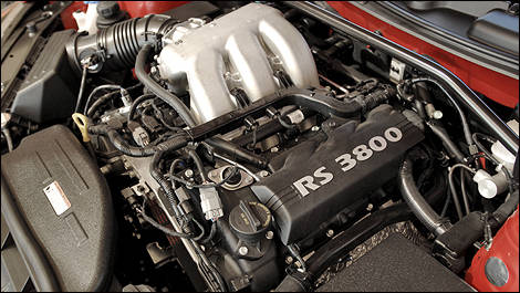 That 3.8-liter, six-cylinder engine is derived from the Azera and Genesis sedans. Numerous modifications have altered its output to 306 horsepower along with a torque rating of 266 lb-ft at 4,700 rpm. For instance, Hyundai engineers installed an upgraded cooling system, increased the flow of the exhaust system and reworked the engine block.