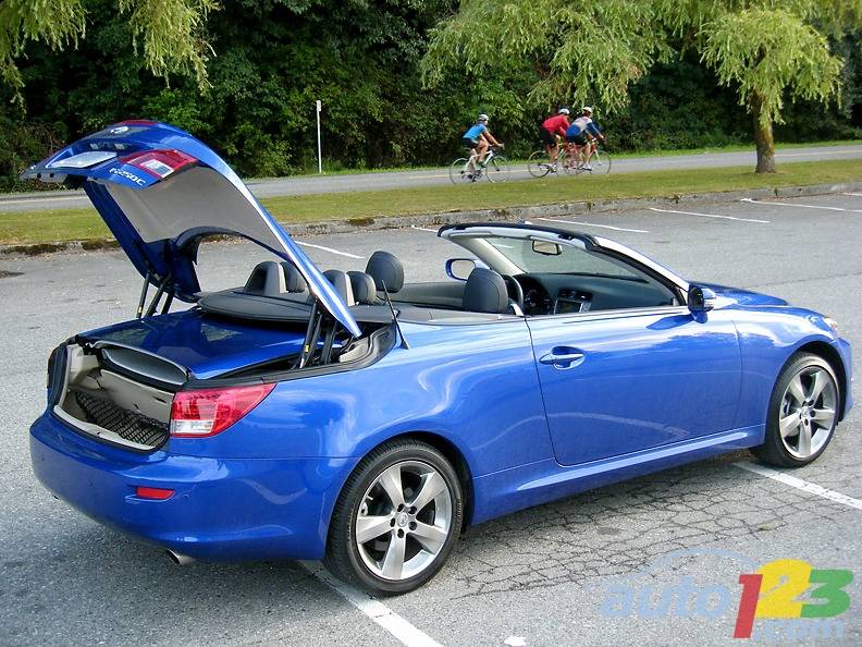 The wedge-like body of the IS 250 C performs a remarkable job of minimizing wind turbulence, enabling casual conversation in most top-down driving scenarios.