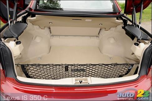 Wait, it gets even worse… The trunk is significantly higher than that of the regular IS in order to accommodate the retractable top and cargo room is virtually non-existent once you fold it in. Consider this: I was able to load only a gallon of washer fluid, a folded coat and a small briefcase. Don’t try to fit a set of golf clubs or even a few grocery bags.