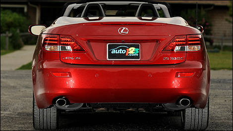 The new IS C stands out from the IS sedans with a specific stern. The shape of the trunk lid and integrated rear spoiler as well as the layout of the exhaust tips and taillight clusters are among the attributes that help define the coupe-convertible's unique design.