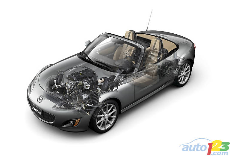 Power in all models comes from a 2-litre, 167 horsepower four-cylinder engine with 140 lb.-ft of torque. For true sports car handling, the MX-5 is a rear-drive vehicle. It offers manual transmissions with both five and six speeds, as well as a six-speed automatic with paddle shift (158 hp). In addition to moving the lightweight roadster along with authority, the four-cylinder engine also turns in exceptional mileage.