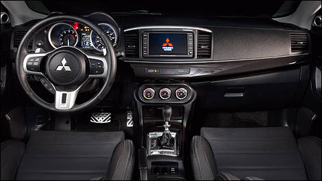 The powertrain is just as techy. The 2.0-litre all-aluminum I4 features turbocharging with intercooling and MIVEC, to grunt out 291 horses and 300 lb-ft of torque. In the uplevel MR model ($51,798) the engine is mated to a 6-speed twin-clutch automatic optimized for sporting potential.