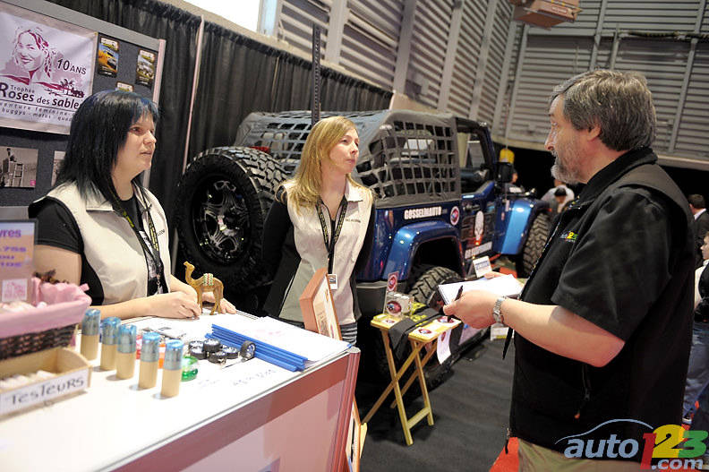 | At the Quebec Auto Show, Team Beladenium was showing a Jeep model. But for the Roses des Sables Trophy, they’ll be driving a four-door 4x4 compact pickup, either a Toyota Hi-Lux or an Isuzu D-Max, rented from the organization. (Photo: Matthieu Lambert/Auto123.com) |