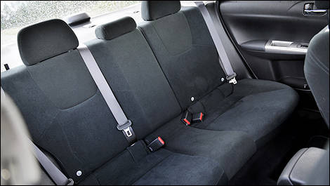 The Impreza’s looks have turned from mildly distinct to mildly conservative during the 2008 model-year redesign. The Sport and Limited trims get some extra flair with their alloy wheels and lower-body aerodynamic add-ons, but our 2.5i tester looks a little naked with its hubcaps. Curiously, the sedan gets dual mufflers, but the 5-door gets only one, yet power output is identical in both body styles.