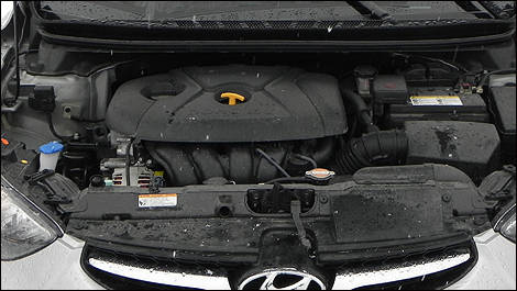 | Under the hood, a smaller and more powerful 1.8 litre four-cylinder replaces the outgoing Elantra’s two-litre unit. (Photo: Justin Pritchard/Auto123.com) |
