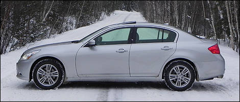 The heavily rear-biased AWD system makes the G25x a joy to drive on snowy backroads, delivering a predictable, frisky and agile handling dynamic. Drivers can easily disengage the stability control system and steer with the throttle if they’re so inclined. Left on and used with the vehicle’s throttle-numbing ‘snow’ setting, the G25x felt nicely planted on even slippery surfaces with snow tires on board.