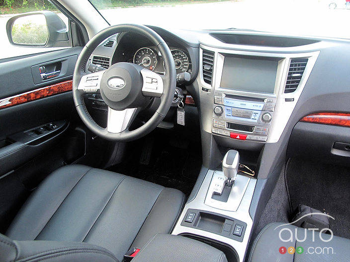 Outback pricing starts at $28,995. Our tester was the most expensive, topped-out Outback you can buy – a 3.6R Limited with Multimedia Option, asking $40,795. Highlights of the Limited package include 17-inch aluminum wheels, roof rails with swing-in-place crossbars, automatic headlights, halogen fog lights, power sunroof, dual-zone climate control, heated and power-adjustable front seats, leather, and woodgrain.