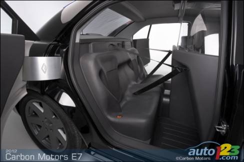 Carbon Motors says the E7 will come with antilock brakes, stability control and an aluminum structure for enhanced agility and stability. Rear-seats of the hose-off-to-clean variety, while the front perches are built to accommodate an officer wearing a utility belt. The interior is night-vision compliant, and E7 can be fitted with radiation and biological threat detection. Integrated shotgun racks are available, too.
