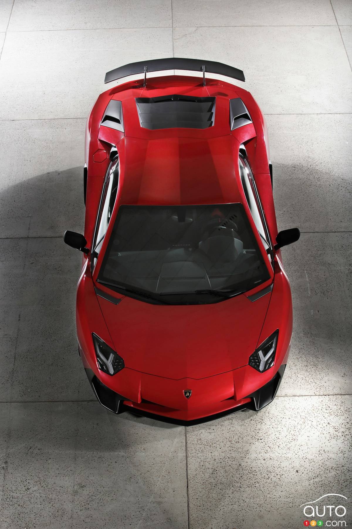 Featuring a full carbon body, aluminum front and rear frames, side air intakes, and a 3-position adjustable rear spoiler, the Lamborghini Aventador LP 750-4 SV rides on Pirelli PO Corsa tires (255/30ZR20 front; 355/25ZR21 rear) and uses carbon ceramic brakes.