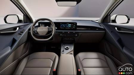 Kia is giving the interior a makeover as well. The dash has been reworked up top and now welcomes the twin conjoined 12.3-inch screen displays found in the EV models. The steering wheel is two -spoke and flat-topped and -bottomed.
