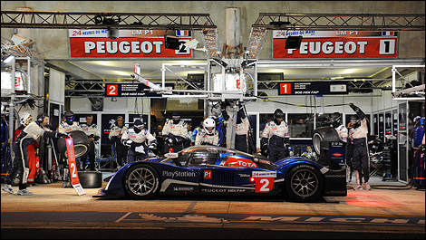 The three remaining Peugeots took their place at the head of the race. But the No 1 car of Anthony Davidson, Marc Gené and Alexander Wurz was held up at nightfall with the replacement of a starter motor-alternator-management system, leaving the No 2 car of Nicolas Minassian, Franck Montagny and Stéphane Sarrazin to lead for the majority of the race. Early in the morning a broken engine put them out of the race.