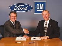 General Motors Corp. and Ford Motor Co., the two largest automakers in the world, stated recently they will be teaming up in a unique and unprecedented partnership to develop a new 6-speed automatic transmission. The high-volume, front-wheel-drive transmission will offer 4 to 8% better fuel economy over traditional 4-speed units. Ford and GM have inked an initial agreement to cooperate on designing, engineering and testing the new transmission as well as working with suppliers to develop and buy components. They expect to finalize the deal this winter.