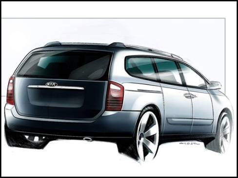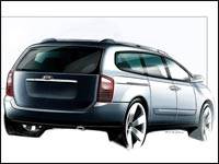 Kia will show off a brand new version of its Sedona minivan next week. The 2006 model will be larger than the current model in all major dimensions, including overall length and wheelbase.