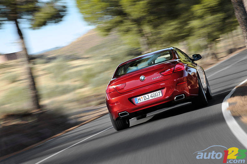 The 2012 BMW 650i is 39-mm wider and rides on 75-mm longer wheelbase than its predecessor. According to the company, the chassis is lighter and aerodynamics are improved to increase fuel economy. Adaptive LED headlights and 19-inch alloy wheels with reinforced-sidewall tires highlight the exterior changes.