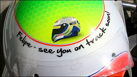 On a report posted on the Italian team's website, the recovering 28-year-old said he watched the European grand prix from his Sao Paulo bed and felt emotional to see the helmet tribute (photo) and hear the kind words of his countryman and friend Rubens Barrichello.