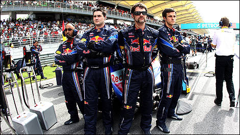 The report said the elements in question, hidden behind six burly Red Bull mechanics on recent grand prix grids, were aerodynamically shaped and at a 20 degree horizontal angle rather than the allowed five.