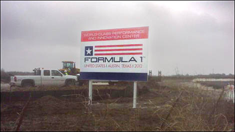 “In case you are unable to read the sign says, “World Class Performance and Innovation Center. Formula 1. United States. Austin, Texas 2012.”