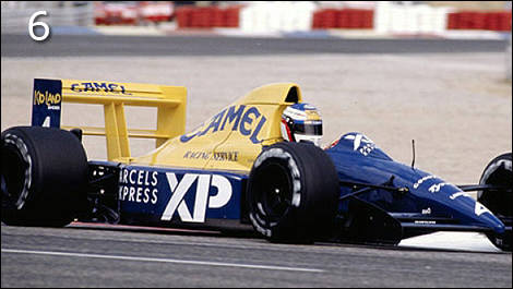 | 1989 Tyrrell 018 Ford – In his maiden Grand Prix in career in France, Jean Alesi drove this Tyrrell that seemed to have been fitted with the wrongly painted engine cover and rear wing. The fact was that Alesi was a Camel sponsored driver, therefore the yellow color. |