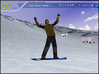 A similar process continues for the snowboarding and cycling legs of the Iron Man-type competition, with the cycling being the most fun - especially when losing control and watching the bike and rider fly off the end of a cliff, smack on the opposing wall and fall to his doom. Even the speedometer readout at the top left accelerates as the rider freefalls, ending with an abrupt "00 MPH" when he supposedly hits the canyon floor below. Good family fun, as the graphics are G-rated.