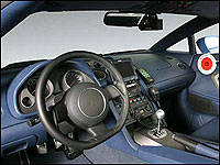 This cockpit of this Gallardo, however, isn't like most. Rather than sporting a radar detector and a twelve-disc CD changer, it's stuffed to the gills with sophisticated perpetrator-nabbing equipment. An aftermarket LCD screen has been fitted to the Gallardo's center console, which feeds information from the satellite navigation system, as well as the information from the police data bank about previous infractions (speeding, most likely). Much of the equipment is stored between and behind the driver and passenger's seat, rather than up front around the center console as in most police cars.
