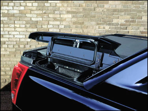 The cargo box features a standard three-piece tonneau cargo cover and lockable tailgate to protect items secured inside from the elements and theft. The sides of the cargo box, along with the Midgate and tailgate, are constructed of a PRO-TEC composite material. The EXT's rear window is removable to allow for additional cargo space or for added air-circulation. The window is easily stowed on board and works in conjunction with the Midgate.