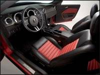 For the first time on any SVT Mustang, the front grille features an off-center snake in place of the standard running horse. ''GT500'' is emblazoned inside the side rocker stripes, and the name ''SHELBY'' is prominently featured across the rear deck. The SVT logo can be seen on the wheel center caps -- a signature SVT location -- as well as on the doorsill plates. To top if off, the ''gas cap'' medallion between the taillights reads ''Shelby GT500'' centered on the Cobra image.