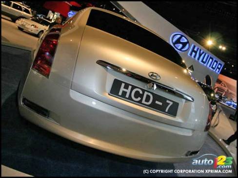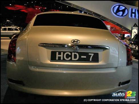 First introduced at the 2002 Chicago Auto Show, this concept is one of many brainchilds of Hyundai's California Design studios. The imposing HCD-7 is a futuristic hi-luxury sedan that would be positioned well above the XG350. The 7 is powered by a 270 hp 4.5L V8 mated to a 5-speed automatic that drives the front wheels and is equipped with air suspension in all four corners. Its aviation inspired lines are very aerodynamic.