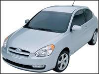 Co-developed with subsidiary brand Kia, the third generation Accent is the paternal twin to the Kia Rio; both vehicles share the same drivetrain and architecture, plus many similar features. While Kia offers a practical five-door hatchback version in addition to a sedan, Hyundai aims to perk up its entry-level vehicle lineup by including a sporty 3-door hatch variant to offset the simple if not ordinary Accent four-door sedan.