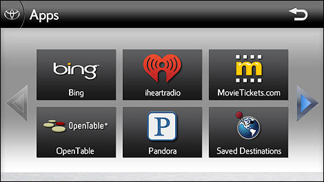 After downloading the Toyota Entune mobile application and pairing a Bluetooth-capable smartphone with their Toyota vehicle, customers can begin accessing a wide variety of personalized content and services like Bing, iheartradio, MovieTickets.com, OpenTable.com and Pandora. Obviously, the app selection will be entirely customizable.