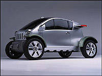 | The Jeep Treo that was first shown in Tokyo is a weird and wacky fuel-cell powered micro SUV with drive electric motors at each wheel and drive-by-wire technology. See additional larger photos in photo album. (Photo: DaimlerChrysler) |