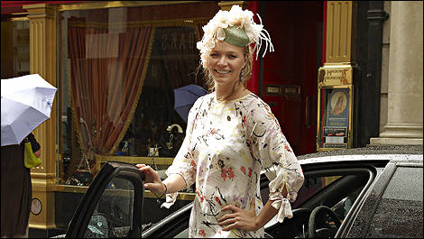 | Supermodel Jodie Kidd arrives at the Rene Caovilla store in Old Bond Street in a Maserati Quattroporte Sport GTS |