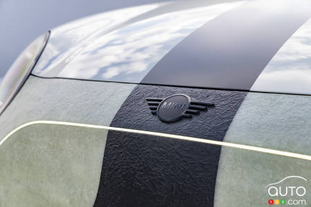 This version is inspired by the world of surfing, and its body largely uses the same fiberglass used to make most surfboards sold worldwide. Wider fiberglass fenders are attached with clearly visible rivets (which adds to the style), while a rear wing is suspended from the roof. Mini says the semi-transparent fiberglass panels reduce the Skeg’s weight by 15 percent.