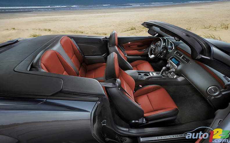 Camaro convertible is offered in 1LT/2LT (V-6) and 1SS/2SS (V-8) trim packages and priced from $30,000 MSRP (including $850 destination). Nine production exterior colors are available, with tops offered in black or tan. Rear parking assist is standard on all convertible models.