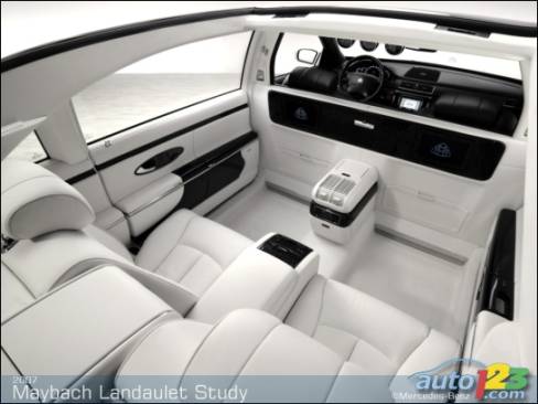 For a new 'study' (concept, in common speak) they're re-visiting the landaulet- a machine with a folding roof which can be opened fully at the rear of the cabin while the chauffer compartment remains closed off. Underneath the opened rear roof, passengers are coddled by white leather arm-chairs and treated to an open-air experience in absolute luxury.