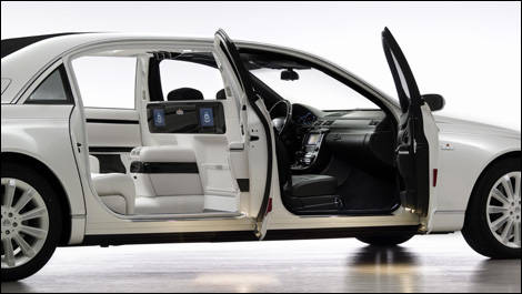 A special white color scheme adorns the car- with white velour carpeting and a white fabric roof-liner in addition to white leather seats. Sparkling white paint adorns the outside, and the whole package rides on 20 inch wheels.