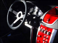 get a good look inside the RCup, you'll have to open the doorsbecause the car has extremely dark tint on the windows. Inside, it's acomplete racer, with tubular frame roll cage, racing seats andfour-point harnesses to keep driver and navigator strapped in place.Also, like most production-based racing cars, the RCup features thesame dashboard, and instrument cluster as the 207, but no stereo,carpets or cupholders. All surfaces that the driver contacts - thesteering wheel, sequential shifter and handbrake - are trimmed insuede, while the centre console has been gutted, and fitted withrelevant switches, gauges and other rally car vitals such as thecontrols to the AWD system.