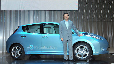 | "The Nissan Leaf opens a new era in the history of the automobile," said Nissan CEO Carlos Ghosn during the car’s unveiling in Japan. |